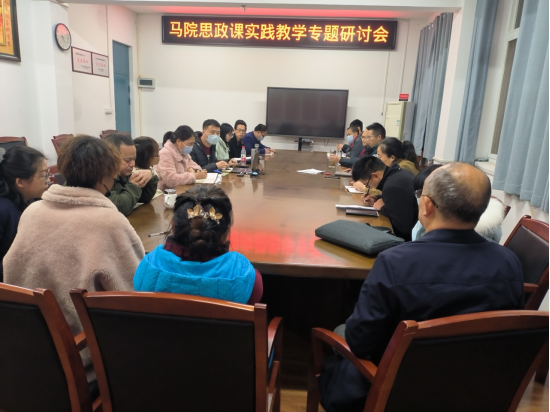 为提升马院思政课教师实践教学水平,加强湖北省一流课程《马克思主义与当代中国》暑期社会实践课程建设,1121日下午,学院在3206会议室召开思政课实践教学专题研讨会,会议由思政课部主任马保青主持,副院长(主持工作)黄永昌、院长助理安军和全体思政课教师参加会议。