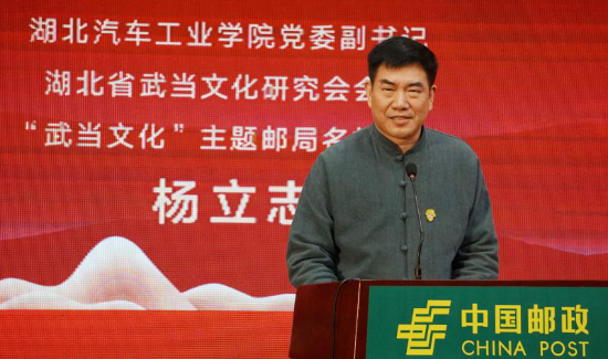 演讲中,杨立志怀着严谨的学术精神,立足详实的史料文物,多角度多层次展现了武汉三镇与武当山源远流长的文化关系。他说,武汉和武当山文化关系紧密,两地在思想信仰和文化艺术上相互交流、相互影响,文脉贯通、渊源有自。“文脉需要载体,武当山的金石碑刻、书画刻文就是中国文化传承的载体,是中华文脉延续的体现。”文物镌刻着历史记忆,杨立志通过解读武当山的玄武铜殿、武当嘉庆图、青花瓷碑等文物,再现了千百年来中华民族“尊道贵德”、“诚信向善”的精神追求,反映了中国传统文化对诚信、友善一以贯之的推崇,印证了社会主义核心价值观中“诚信”、“友善”的厚重历史渊源。武当山不仅仅是旅游胜地,更是中华民族的精神家园。杨立志认为邮票文化承载功能需要进一步挖掘,进一步深入探讨。他着力寻找武当文化与邮政文化的切合点,以一套武当碑刻明信片的创意,号召共同讲好武当故事,传播好武当文化。