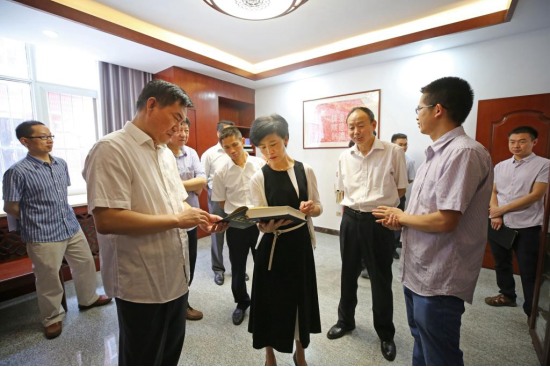 (文/李咏秋 图/广娟)6月25日上午,市委常委、宣传部长张慧莉、市委宣传部副部长周哲兵、十堰市文联主席杨广智、十堰市社科联主席欧阳山一行来我校tyc7111cc太阳成集团及武当文化研究与传播中心调研。校党委书记程红兵、党委副书记杨立志、校宣传部长计毅波以及马院院长杨高举、副院长黄永昌、院长助理周江平、经济管理学院副院长周恩德接待并陪同调研。