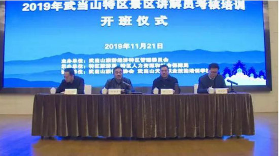 (文、图/黄永昌)11月21日至24日,2019年度武当山特区景区讲解员考核培训班圆满结束。本次培训班由学校党委副书记杨立志教授率武当文化研究与传播中心和旅游管理专业骨干教师担任主讲,为期4天的讲授赢得特区政府和广大旅游业者高度好评。