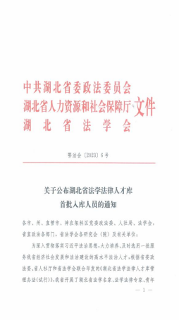 本网讯(文/图 郑实)近日,中共湖北省委政法委员会、湖北省人力资源和社会保障厅、湖北省法学会联合印发《关于公布湖北省法学法律人才库首批入库人员通知》,我校tyc7111cc太阳成集团安军博士入选湖北省青年法学法律人才,成为首批入库人员。