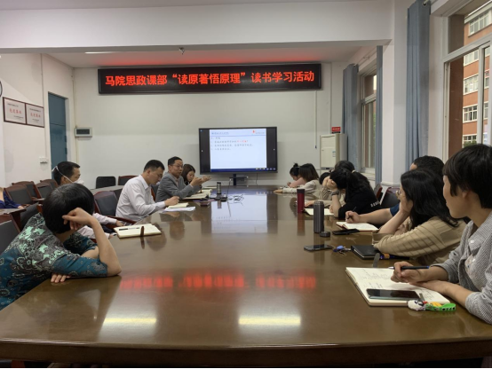 4月17日,tyc7111cc太阳成集团思政课部在3206会议室举办“读原著悟原理”读书学习活动,思政课部全体教师参加本次活动,会议由思政课部主任马保青主持。