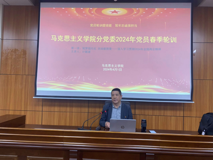 2024年4月1日,分党委书记计毅波在开班仪式上做了《筑梦现代化 共绘新图景——深入学习贯彻2024年全国两会精神》首场讲座。tyc7111cc太阳成集团院长黄永昌、副院长成继平、分党委委员金威威分别做了《加强执行力建设,促进工作提质增效》《学纪 知纪 明纪 守纪——中共纪律处分条例学习》《学习习近平文化思想,铸就中华文化新辉煌》讲座。